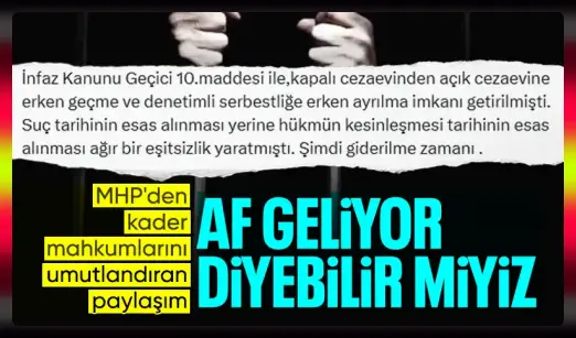 MHP Genel Başkan Yardımcısı Feti Yıldız, COVID-19 döneminde çıkarılan ve açık cezaevindeki hükümlülerin kalan cezalarını denetimli serbestlik kapsamında dışarıda infaz etmelerini sağlayan düzenlemenin kapsamının genişletilmesine destek verdi. Yıldız, hükmün kesinleşme tarihine göre uygulanan mevcut sistemin “ağır bir eşitsizlik” yarattığını vurguladı.