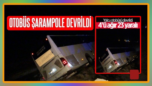 Kadirli-Adana karayolu Hacıbeyli Mahallesi mevkiinde kontrolden çıkan yolcu otobüsü şarampole devrilmesi sonucu a 4’ü ağır olmak üzere 23 kişi yaralanırken olayla ilgili soruşturmanın sürdüğü bildirildi.