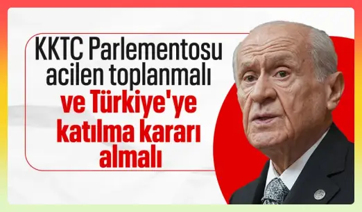 MHP Genel Başkanı Bahçeli KKTC’deki seçimlerle ilgili yaptığı açıklamada, “KKTC parlamentosu acilen toplanmalı, seçim sonuçları ve federasyona dönüşün kabul edilemeyeceğini ilan etmeli ve Türkiye Cumhuriyeti’ne katılma kararı almalıdır.” dedi.
