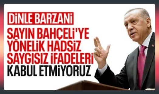 Cumhurbaşkanı Recep Tayyip Erdoğan, partisinin TBMM Grup Toplantısı’nda yaptığı konuşmada, Mesut Barzani’nin Şırnak ziyareti sonrasında MHP Genel Başkanı Devlet Bahçeli’ye yönelik kullanılan sert ifadeleri değerlendirdi. Erdoğan, söz konusu açıklamaları “hadsiz” ve “kabul edilemez” olarak niteledi.