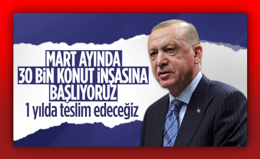 AFAD Genel Merkezi’nde düzenlenen Kabine toplantısının ardından açıklamalarda bulunan Cumhurbaşkanı Erdoğan, mart ayında 30 bin konutun inşasına başlanacağını ve bir yıl içinde deprem bölgesindeki konut ihtiyacının tamamını karşılayacak sayıda konut inşa edileceğini söyledi.