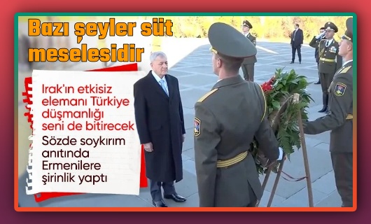 Ermenistan’da sıcak karşılandığını anlatan Reşid, bu ülkenin kendileri için ‘dost’ olduğunu söyledi. Irak cumhurbaşkanı, sözde ‘Ermeni soykırımı’ anıtına çiçek bıraktı.