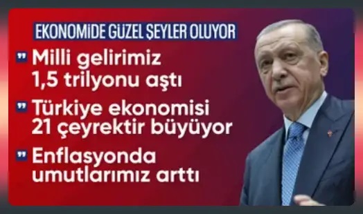 Cumhurbaşkanı Recep Tayyip Erdoğan, partisinin TBMM grup toplantısında yaptığı konuşmada hem gündeme ilişkin değerlendirmelerde bulundu hem de son ekonomik verileri analiz etti. Türkiye ekonomisinin 21 çeyrektir kesintisiz büyüdüğünü vurgulayan Erdoğan, “Milli gelirimiz 1,5 trilyon doları aşmış durumda.” ifadelerini kullandı.