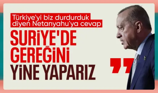 Cumhurbaşkanı Erdoğan, Netanyahu’ya yönelik tepkisinde şunları söyledi: Her şeyden önce defalarca biz bunu söyledik. Bugün yine aynı noktadayız. Değişen bir şey yok. Suriye’nin toprak bütünlüğü bizim için esastır. Suriye’nin kaderine, Suriye’nin halkı karar verecektir.