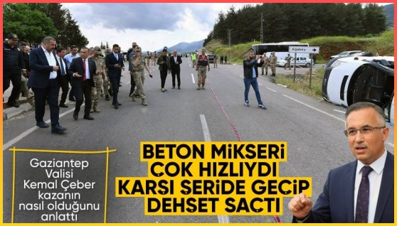9 vatandaşın hayatını kaybettiği kazayla ilgili konuşan Gaziantep Valisi Kemal Çeber, facianın beton mikserinin hızını ayarlayamayarak kontrolü kaybetmesi nedeniyle meydana geldiğini söyledi.