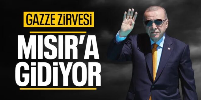 Son dakika gelişmesine göre, Cumhurbaşkanı Recep Tayyip Erdoğan Gazze Zirvesi’ne katılmak üzere yarın Mısır’ın Şarm El-Şeyh şehrine gidecek.
