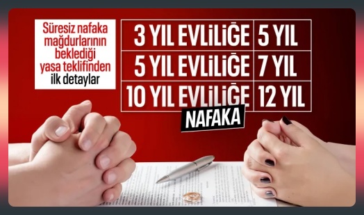 Bu kapsamda nafaka süresi, evlilik süresine 2 yıl eklenerek belirlenecek bir modele bağlanacak.