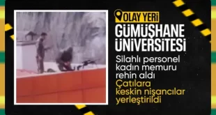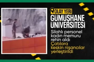 Gümüşhane Üniversitesi’nde bugün öğle saatlerinde büyük bir rehine krizi yaşandı. Mühendislik ve Doğa Bilimleri Fakültesi’nde görev yapan ve daha önce uzman çavuş olarak çalıştığı öğrenilen H.T., henüz belirlenemeyen bir nedenle aynı fakültede memur olan D.B. isimli kadını silahla rehin aldı. İhbar üzerine kampüse çok sayıda özel harekât ekibi sevk edildi. …