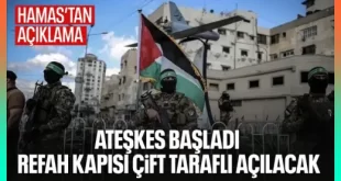 İsrail ile Hamas arasında varılan anlaşmayla birlikte Gazze’de kalıcı ateşkes ilan edildi. Refah Sınır Kapısı çift taraflı açılıyor; binlerce Filistinli tutuklu serbest bırakılacak. Gazze’de aylardır süren çatışmaların ardından, bölgedeki gerilimi sona erdirecek önemli bir gelişme yaşandı. Hamas tarafından yapılan açıklamada, İsrail ile yürütülen müzakerelerin ardından kalıcı bir ateşkese varıldığı duyuruldu. …