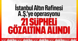 İstanbul Cumhuriyet Başsavcılığı, İstanbul Altın Rafinerisi A.Ş. ve bağlı şirketlerle ilgili soruşturma başlattı. Operasyonlarda 23 kişi hakkında gözaltı kararı verilirken, 21 şüpheli yakalandı. İstanbul Cumhuriyet Başsavcılığı koordinesinde İstanbul İl Jandarma Komutanlığı KOM Şube Müdürlüğü İstanbul Altın Rafinerisi A.Ş. ve bağlı şirketlere yönelik operasyon düzenledi. 21 KİŞİ GÖZALTINA ALINDI Soruşturma, “Türkiye …