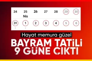 Emekçiler ile İftar programında konuşan Cumhurbaşkanı erdoğan, kamu çalışanlarına müjdeyi verdi.. Cumhurbaşkanı erdoğan açıklamasında, Ramazan Bayramı tatilinin 9 güne çıkartıldığını duyurdu. Her yıl hicri takvime göre belirlenen Ramazan ayı, Müslümanlar tarafından sabır, şükür ve ibadetle geçiriliyor. Ramazan ayının bitmesine sayılı günler kala, milyonlarca Müslüman bayram hazırlıklarına başladı.. Ayrıca Ramazan ayının …
