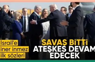 ABD Başkanı Donald Trump, Gazze’deki ateşkesin ardından Tel Aviv’e gitti. Ben Gurion Havalimanı’nda resmi törenle karşılanan Trump, “Ateşkes sürecek, savaş sona erdi” mesajı verdi. Cumhurbaşkanı Erdoğan’a barış sürecine katkılarından dolayı teşekkür eden Trump, “Gazze’ye gitmekten gurur duyarım” dedi. Gazze’de iki yılı aşkın süredir devam eden çatışmaların ardından imzalanan ateşkes anlaşması …