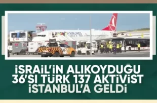 İsrail’in yasa dışı şekilde alıkoyduğu Küresel Sumud Filosu’ndaki 36’sı Türk 137 aktivist, İstanbul Havalimanı’na ulaştı. İsrail, ablukayı kırmak ve insani yardım ulaştırmak amacıyla günlerdir Gazze’ye yol alan Küresel Sumud Filosu’na 1 Ekim akşamında müdahalede bulunmuştu. 46 ülkeden 497 aktivistin bulunduğu filoya, uluslararası sularda seyrederken müdahalede bulunan İsrail, gemileri ve içlerinde …