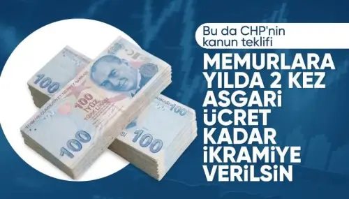 Cumhuriyet Halk Partisi, kamu görevlilerine yılda iki kez asgari ücret tutarında ikramiye verilmesini öngören kanun teklifini Türkiye Büyük Millet Meclisi’ne sundu. Teklifin kabul edilmesi halinde memurlar, haziran ve aralık aylarında olmak üzere yılda iki defa tatil ikramiyesi alabilecek.