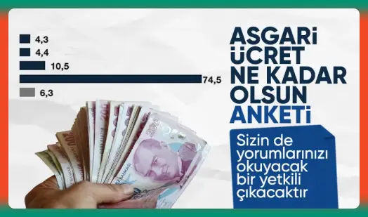 Asgari ücret görüşmelerinin başlamasına sayılı günler kala Metropoll Araştırma, vatandaşların beklentilerini ölçmek amacıyla dikkat çeken bir anket gerçekleştirdi. Ankette katılımcılara, “Sizce asgari ücret ne kadar olmalı?” sorusu yöneltildi. Sonuçlar, toplumun büyük bölümünün en az yüzde 50 zam talep ettiğini ortaya koydu.