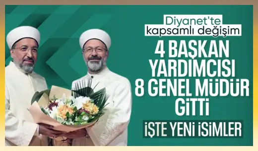 Resmi Gazete’de Cumhurbaşkanı Recep Tayyip Erdoğan’ın imzasıyla yayınlanan kararlara göre, Diyanet İşleri Başkanlığı’nda 4 yardımcı ve 8 genel müdür değişti.